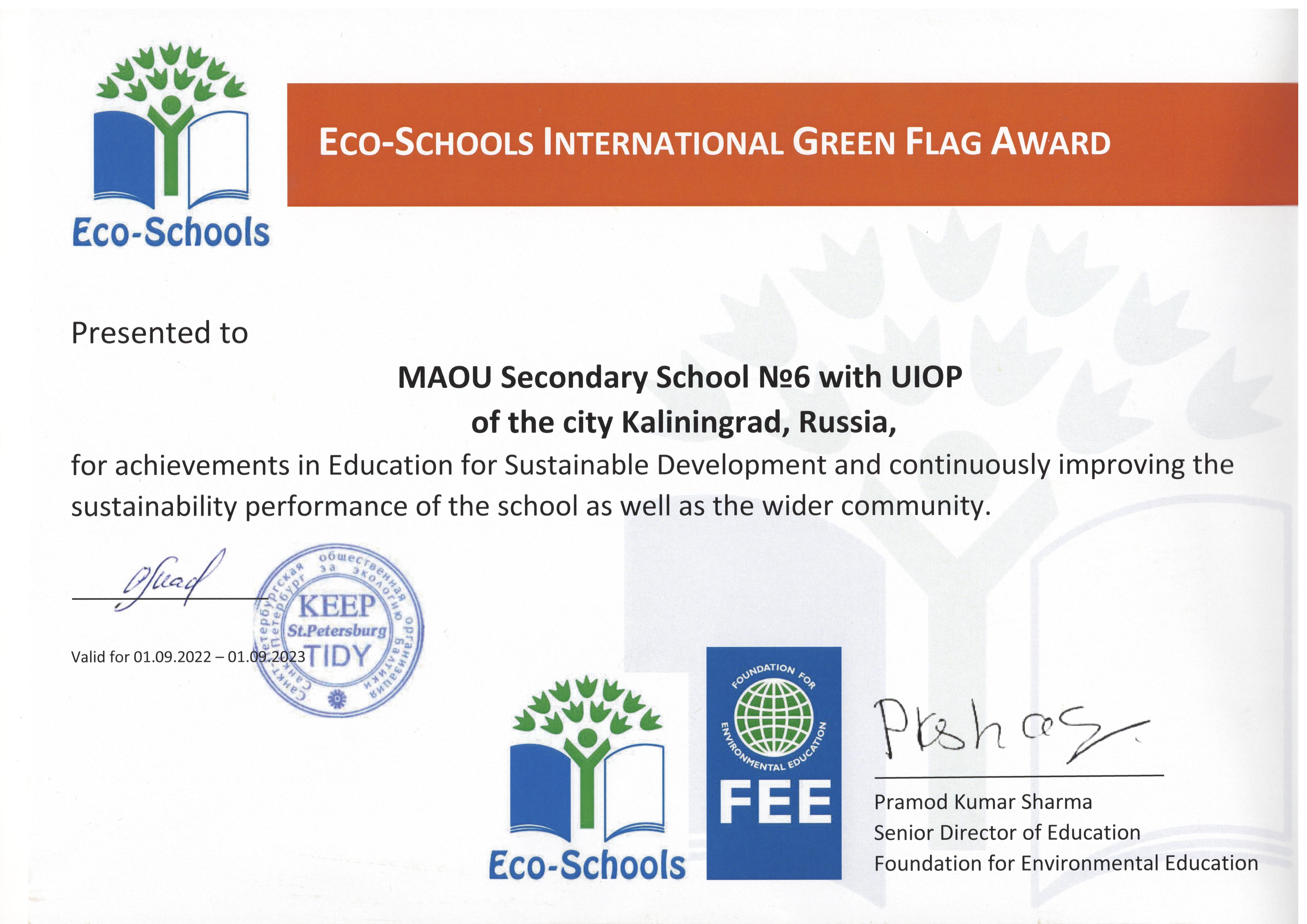 Школа-участник международной экологической программы "Эко-школы/Зелёный флаг".